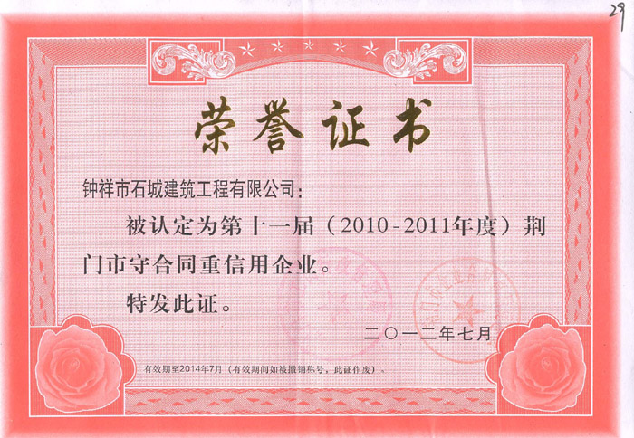 2012年7月被認(rèn)定為荊門(mén)市守合同重信用企業(yè)