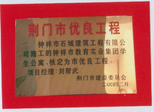 2004年2月施工的鐘祥市教育事業(yè)集團(tuán)學(xué)生公寓被核定為優(yōu)良工程
