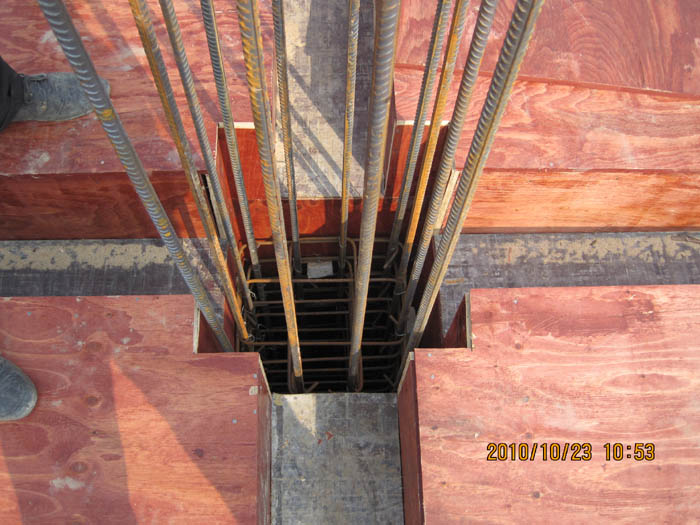 工程概況 本工程為鐘祥市郢中街道辦事處王家灣社區(qū)房屋拆遷安置點(diǎn)住宅小區(qū)工程二標(biāo)段,本標(biāo)段共8棟,其中住宅樓1#為3棟,磚混結(jié)構(gòu)六層;住宅樓2#為3棟,住宅樓3#為2棟,一、二層為框架結(jié)構(gòu),三至六層為磚混結(jié)構(gòu)。 一、基礎(chǔ)工程結(jié)構(gòu)概況 1、住宅樓1#基礎(chǔ)采用采用預(yù)應(yīng)力高強(qiáng)度混凝土(PHC)管樁,樁長(zhǎng)(從自然地面起)18-21m,樁端進(jìn)入第6層砂礫夾卵石大于1.0m,樁徑為300mm。 2、住宅樓2#、3#基礎(chǔ)采用預(yù)應(yīng)力高強(qiáng)度混凝土(PHC)管樁,管樁規(guī)格PHC-A300-70,樁長(zhǎng)(從自然地面起)18-21m,樁端進(jìn)入砂礫夾卵石大于1.0m。 二、主體結(jié)構(gòu) 住宅樓1#為六層磚混結(jié)構(gòu),主體結(jié)構(gòu)混凝土強(qiáng)度等級(jí)均為C25,正負(fù)零以下采用MU20水泥標(biāo)準(zhǔn)磚,M10水泥砂漿砌筑,架空層采用MU15水泥多孔磚,M10混合砂漿砌筑。主體一至六層采用MU15水泥 多孔磚,M10水泥砂漿砌筑。 住宅樓2#、3#室內(nèi)外高差為15cm,底層混凝土強(qiáng)度等級(jí)為C30,二至六層為C20。2.18m以上為MU15水泥多孔磚,M10水泥砂漿砌筑,2.18m以下為MU20水泥標(biāo)準(zhǔn)磚,M10水泥砂漿砌筑。